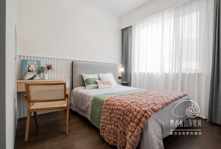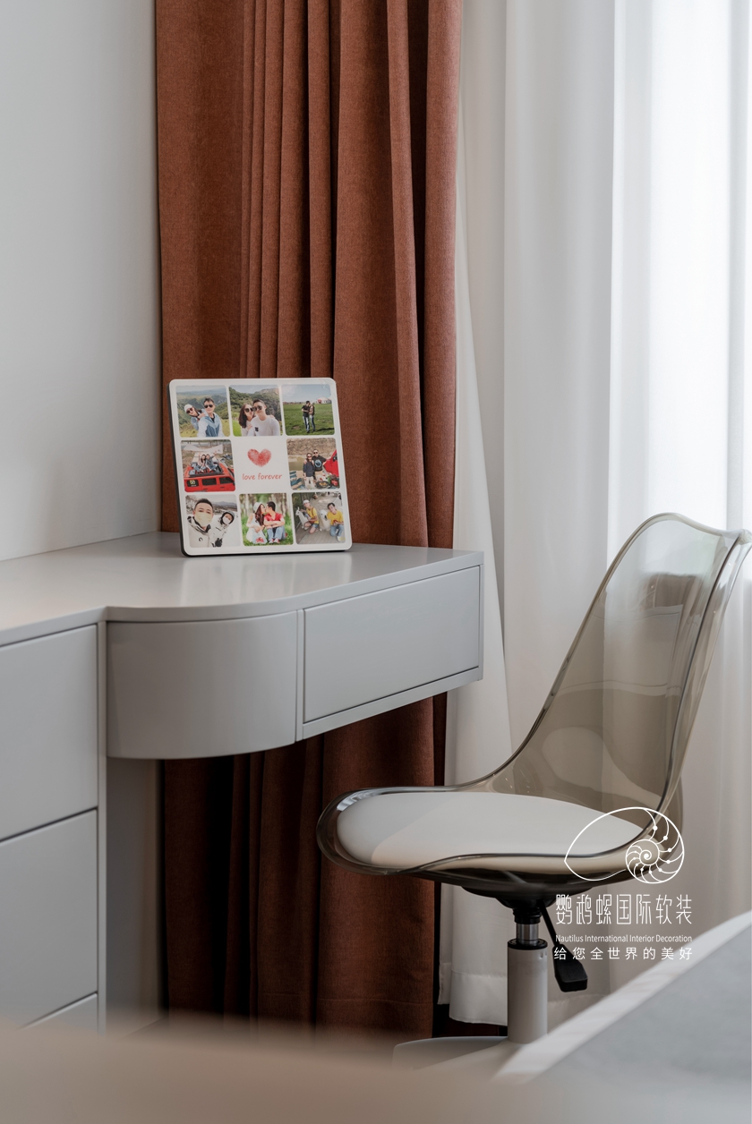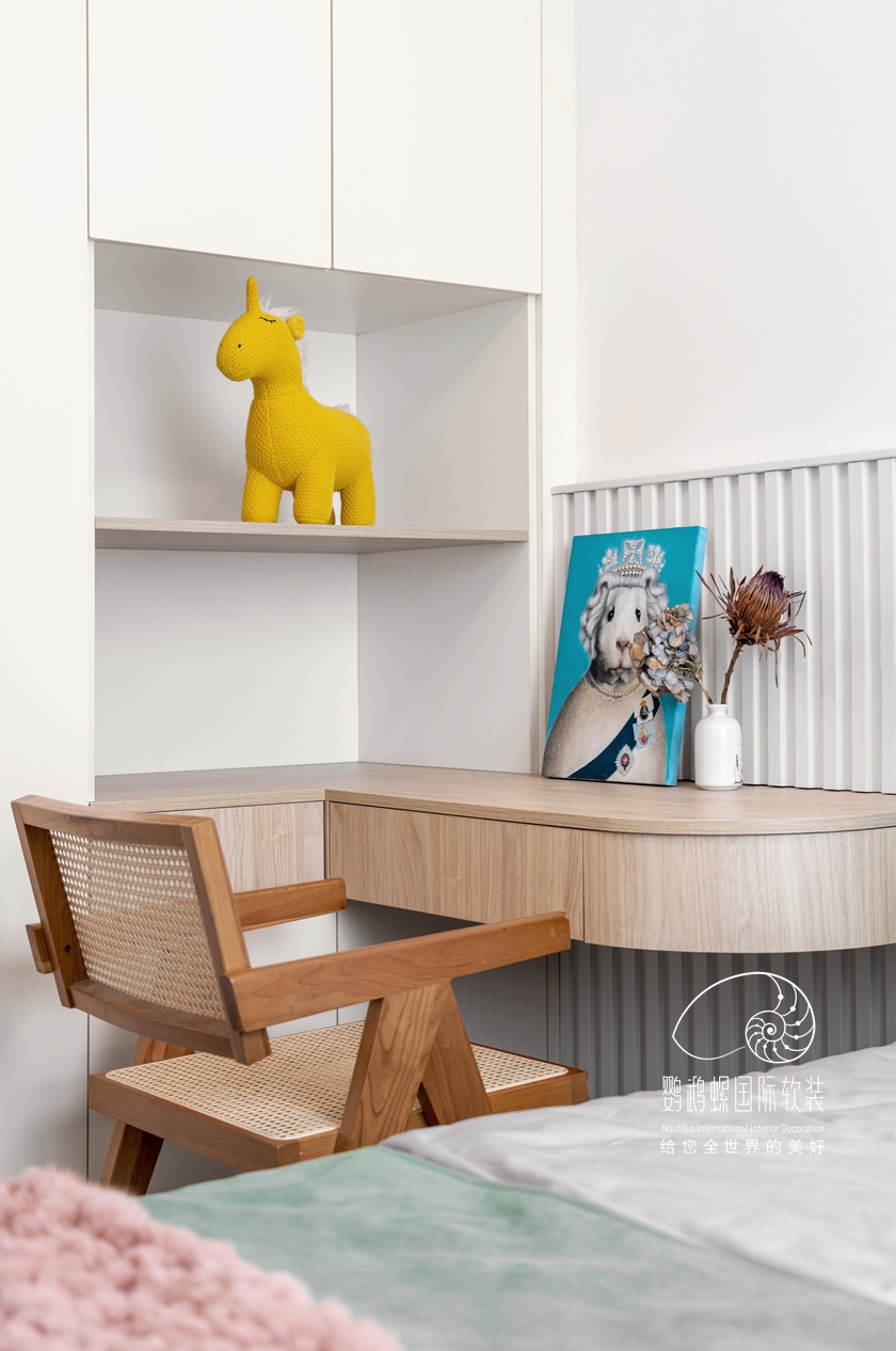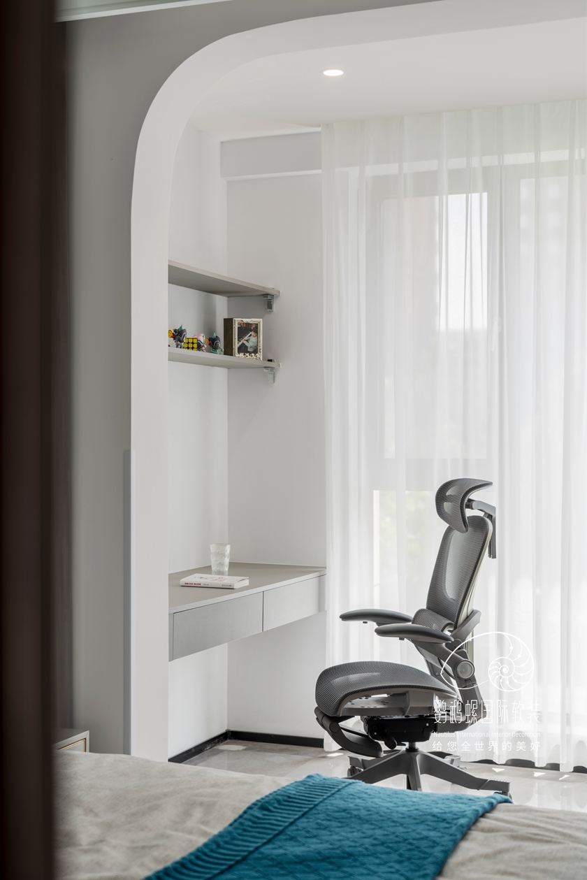 白色的基底下,,,使用大宗的木质元素,,,从纹理自然的书柜到藤椅、木饰面,,,木料温润的色泽给空间带来质朴的恬静感,,,营造了一种悠然松开的生涯方法。。。。。。造型简约、功效适用、材质高尚,,,恰到利益的细腻,,,展现内敛的奢华。。。。。。