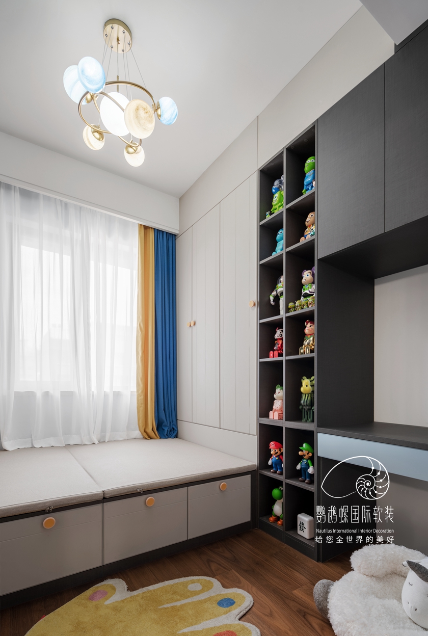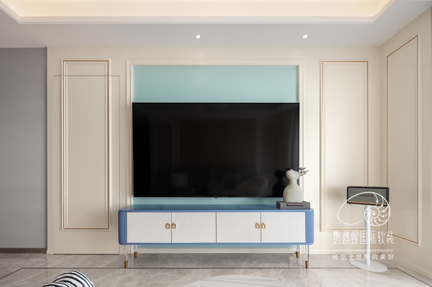 本案以圣托里尼恋爱湾为主题,,,,,空间充满浪漫的气氛。。。整体配色清新自然,,,,,荟萃了现代气概简约适用的特点和美式气概自由贵气的质感。。。